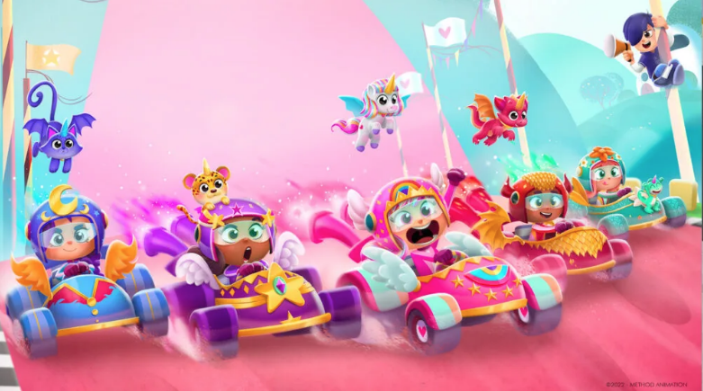 "Karters", descrito por sus creadores como una mezcla colorida de "My Little Pony" y las carreras salvajes de "Mario Kart",aunque para ser honestos esto nos parece más una copia con descaro de "Sugar Rush" de Disney. La serie tiene lugar en Unicornia, un reino lejano donde cinco niños, montados en impresionantes karts, se abren paso a toda velocidad y con un caballito a través de peligrosas batallas e increíbles aventureros para rescatar monomascotas mágicas y salvar el reino. Según los productores, el programa promueve temas y valores como los lazos de amistad, el poder femenino y la importancia de nunca rendirse.